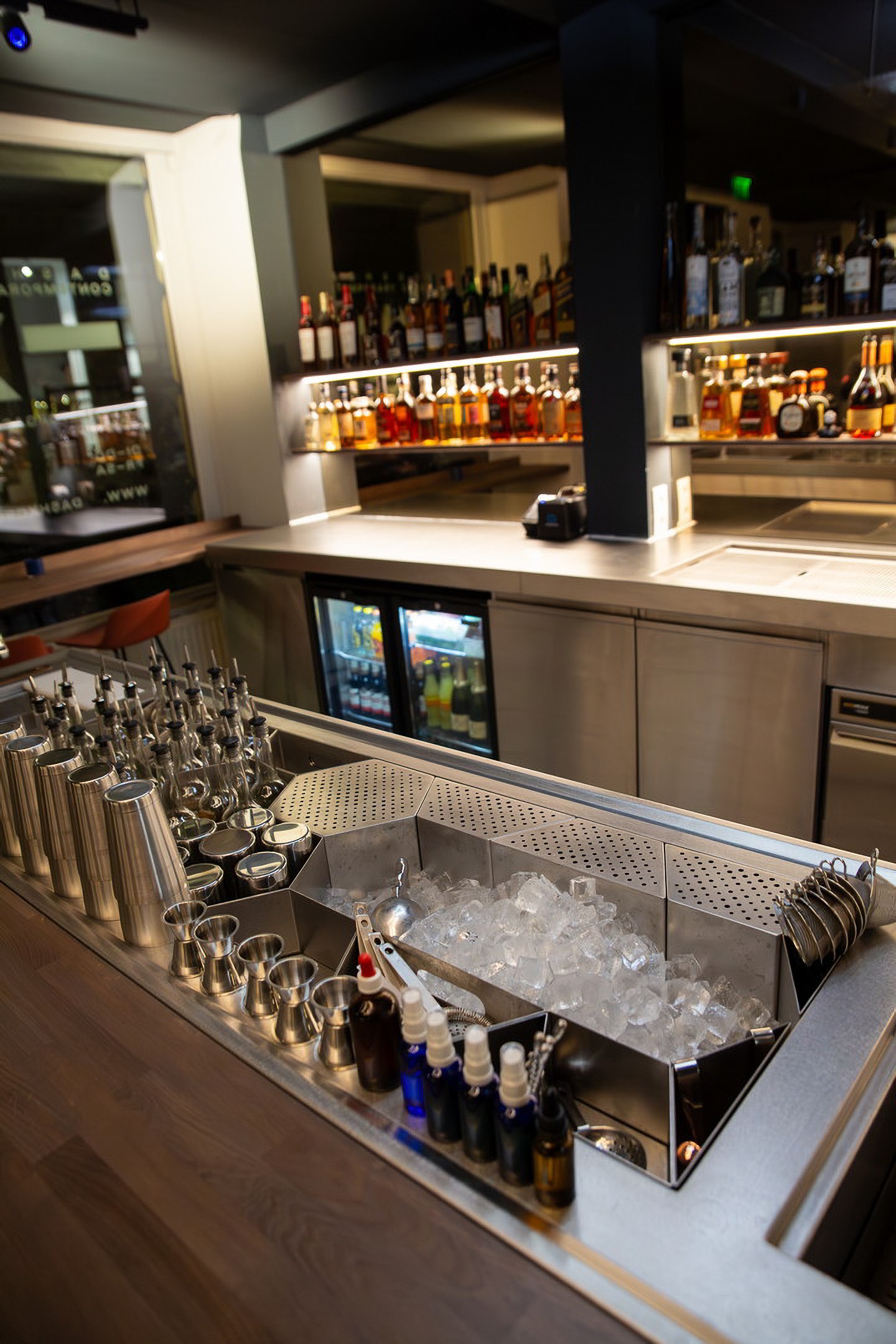 Behind Bars delivered a bespoke 3-metre Tayēr bar station with two integrated sinks and a neutral workbench with storage beneath, paired with undercounter Tayēr cooling and freezing drawers. The setup is completed by a back bar designed with neutral space for third-party cooling equipment and a dedicated wash area, allowing the venue to integrate additional equipment as needed.