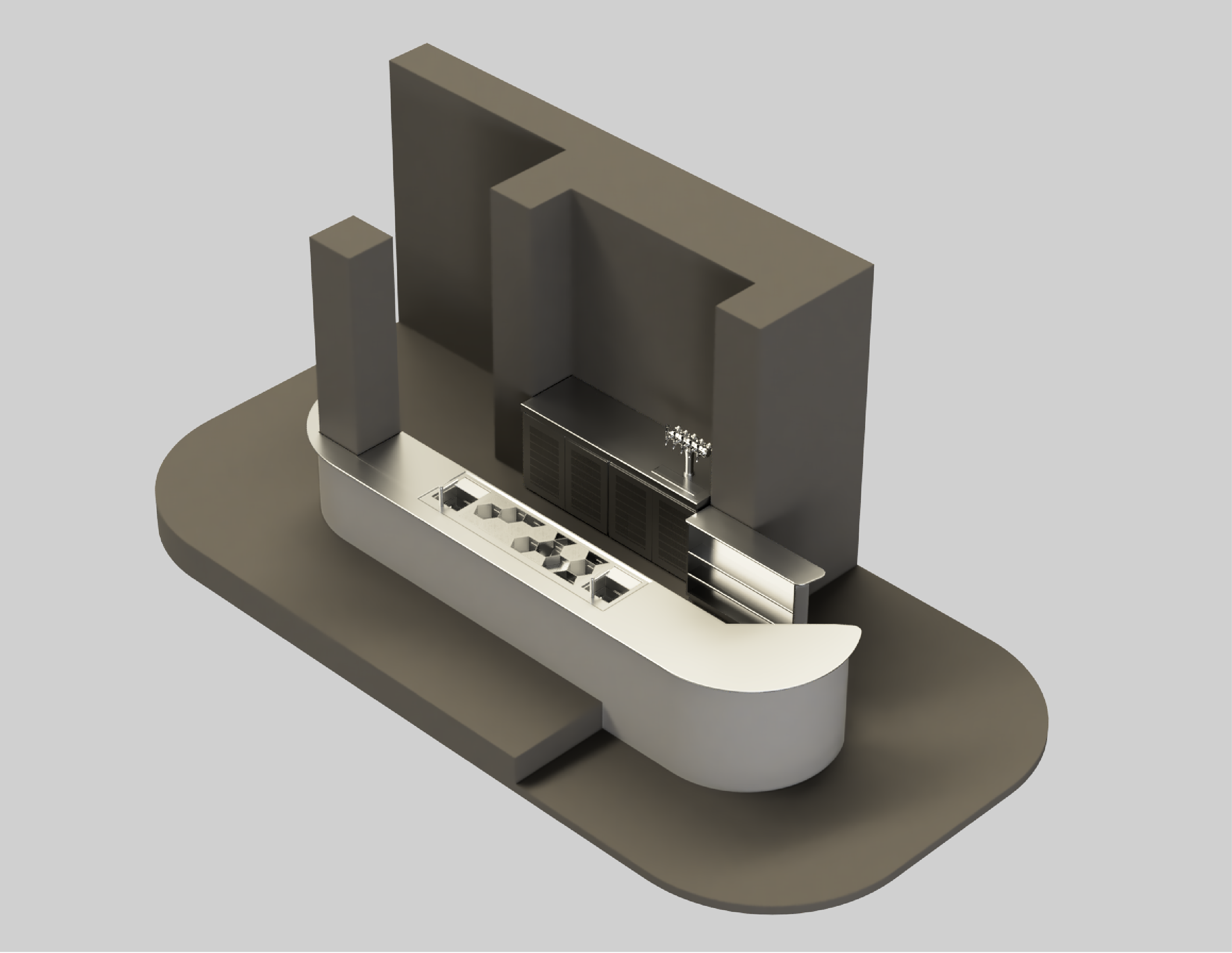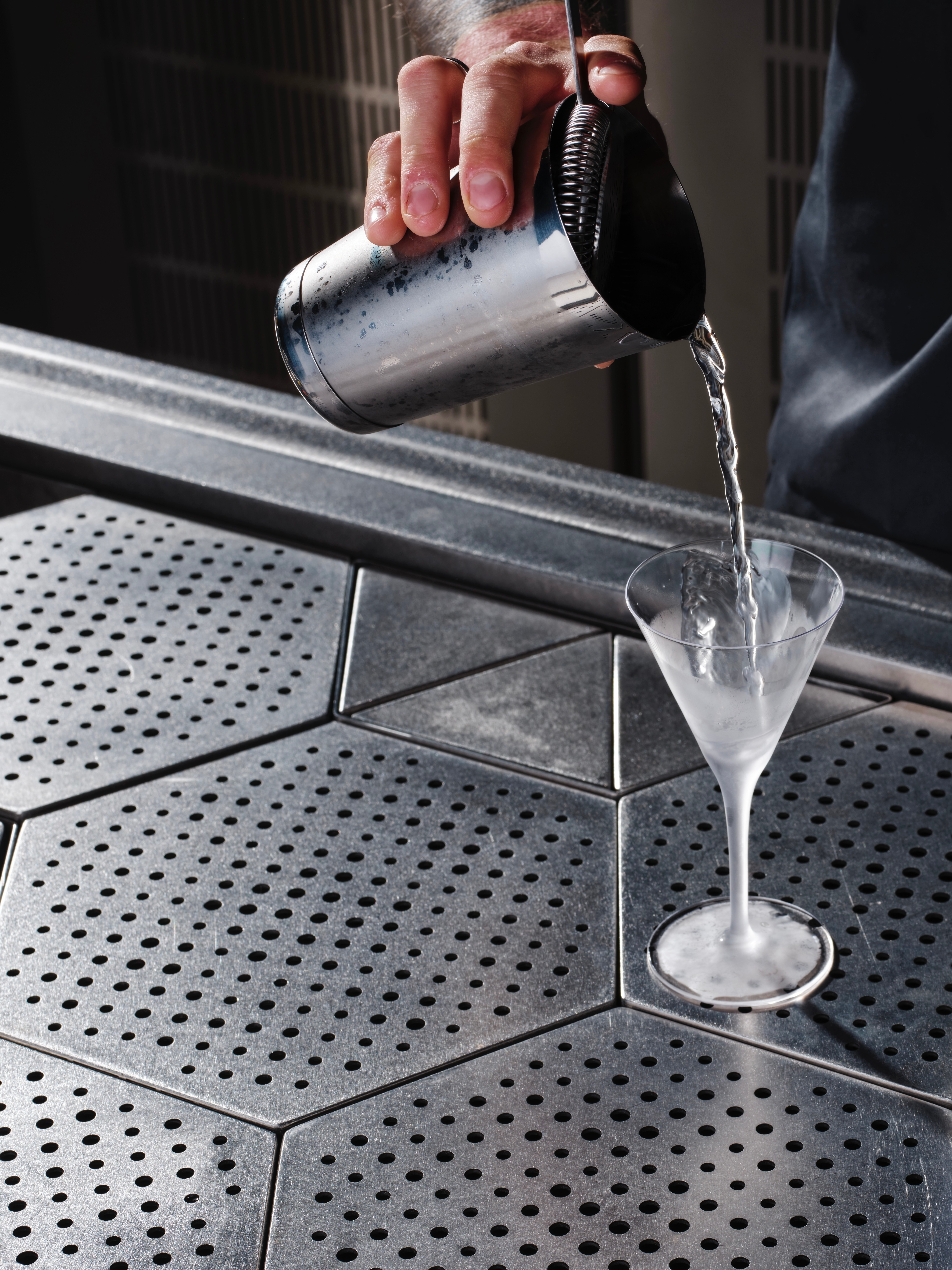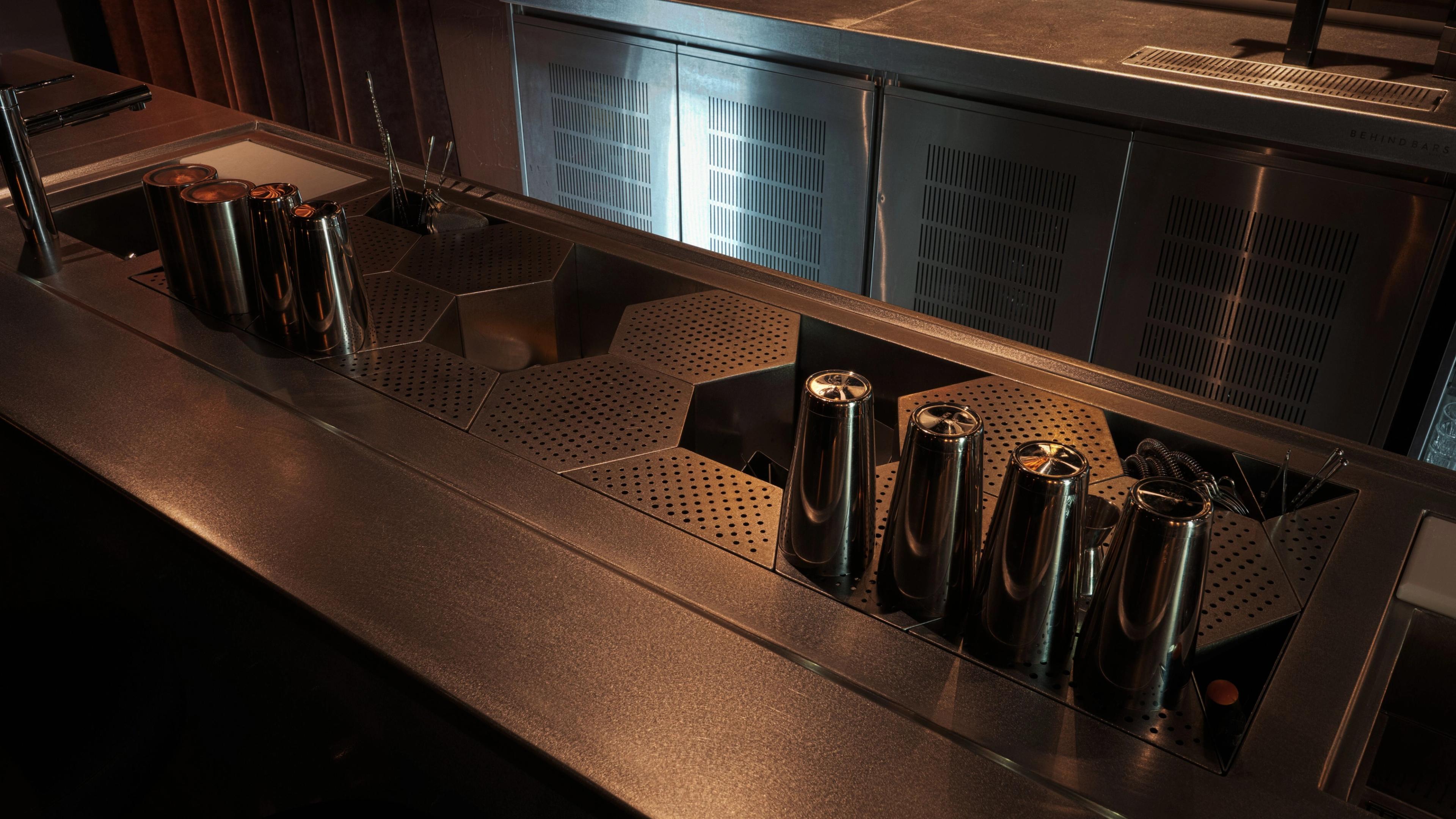 Working with bar manager Julia Kokki and interior architects Koko3, Behind Bars delivered a technical yet atmospheric solution. At the heart of the venue now sits a massive custom Tayēr station designed for two bartenders, with an integrated guest top in a durable polivibre finish. The bar’s split-level floor introduced engineering challenges but we created a seamless step solution that preserves both ergonomics and flow.