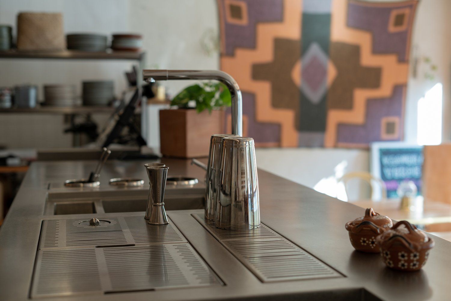 The bar itself is our classic single Paloma with a back bar – a flush, kitchen counter style bar, which features our signature tool wells and flex wells that give the workspace a lot of flexibility. You can also find our tiered bottle rack – a more ergonomic and comfortable solution than the classic speed rack. We think the Paloma really shines in this venue, not only is it the centerpiece, but it also enables the people working behind it to make drinks faster and to have everything that is needed for those beautiful Mexican cocktails!